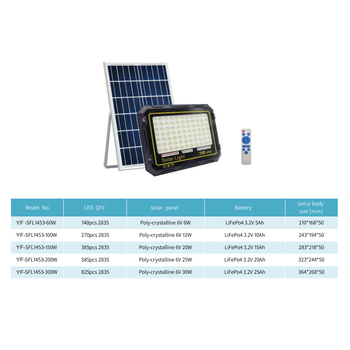 Garantía de calidad Ip66 exterior impermeable SMD reflector almacén Parque 150W 200W 300W lámpara de inundación Led con energía Solar
